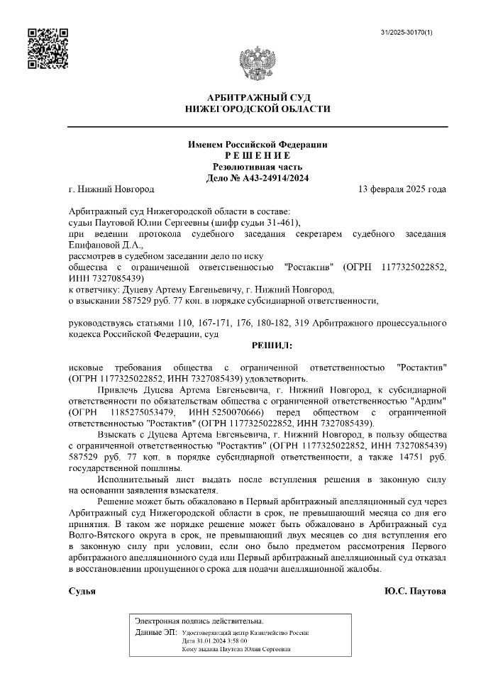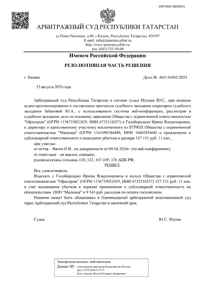 Занимаюсь взысканием дебиторской задолженности "под ключ" от претензии и до привлечения к субсидиарной ответственности руководителей и учредителей брошенных компаний, чтобы получить главный результат - это возврат денежных средств.