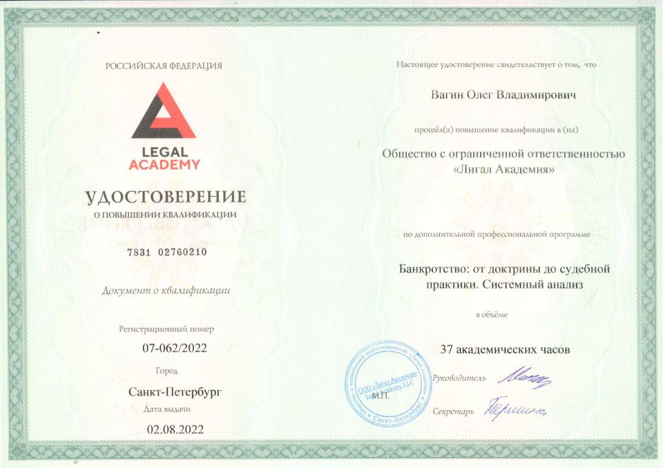 - Понимание специфики дел о банкротстве а также порядка привлечения к субсидиарной ответственности вне рамок дела о банкротстве.