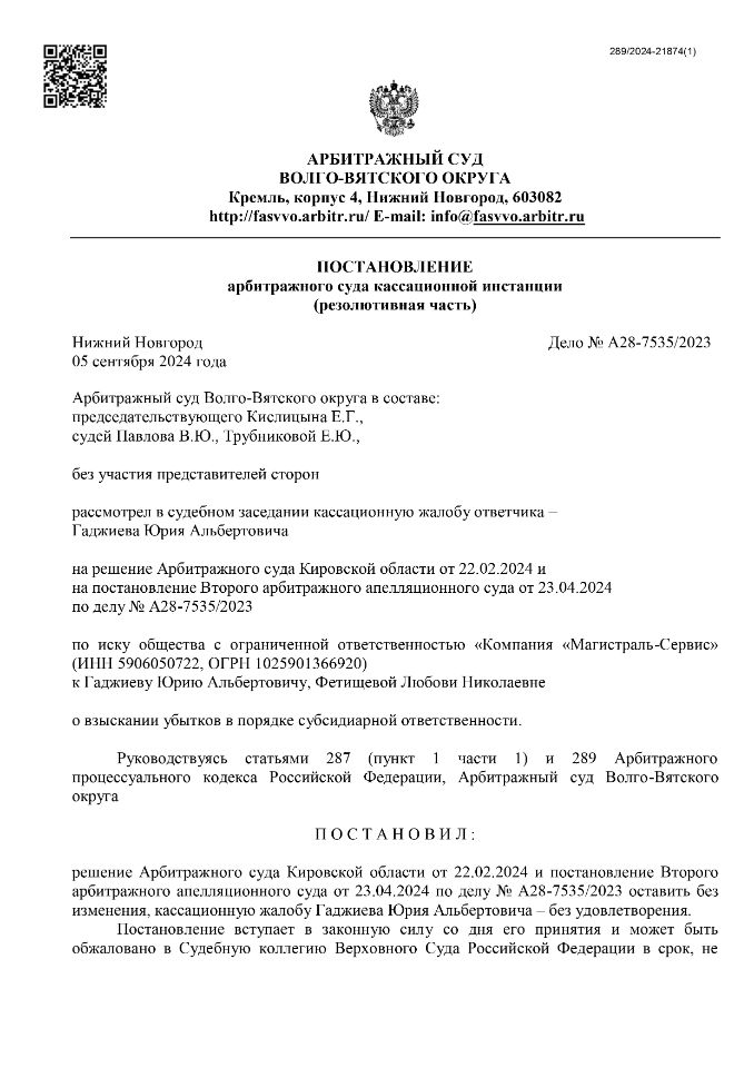Обладаю большой и узкой практикой, успешные кейсы в спорах по субсидиарной ответственности.
